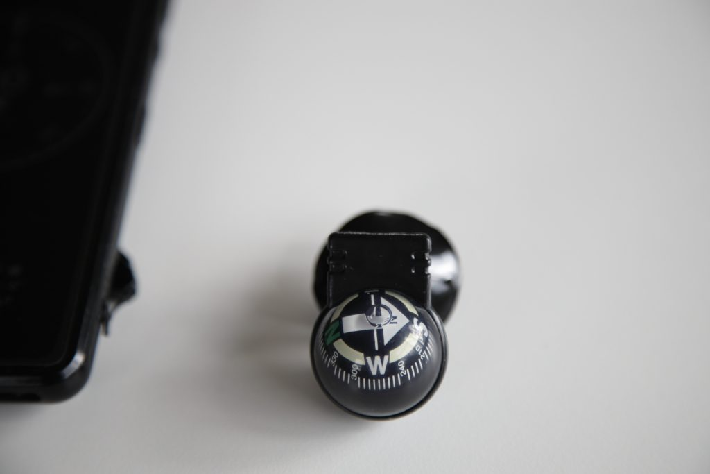なので、今回これを買ってみた。これは車のフロントウィンドウに吸盤で貼りつく磁気コンパス。一昔前はどこのカー用品店でも見かけたものだけど、ナビが普及したせいかここの所見ない。なので、通販で買った。